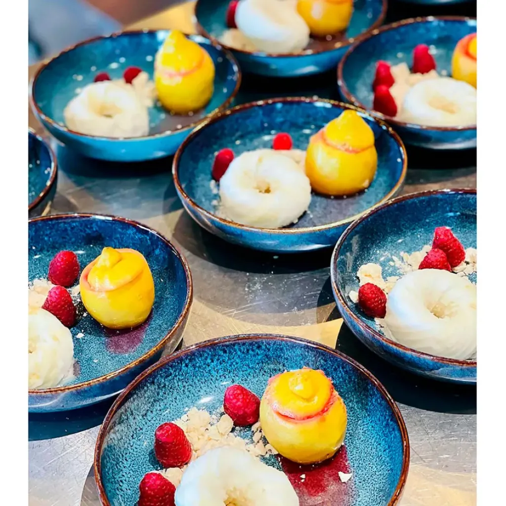 La couleur bleue ajoute une note de sophistication à la table, créant une présentation visuellement attrayante pour vos plats.