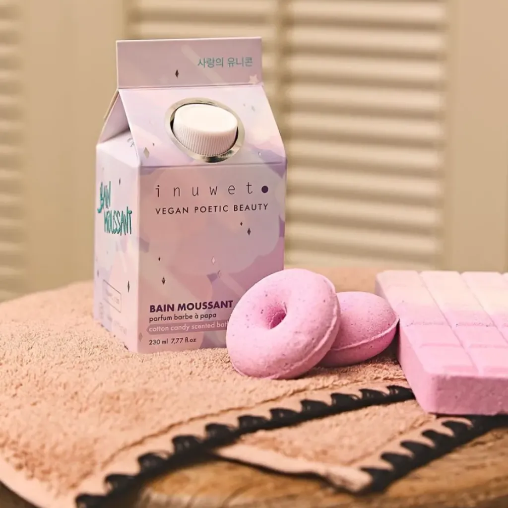 Un moment de détente gourmand grâce au bain moussant au parfum sucré de barbe à papa!