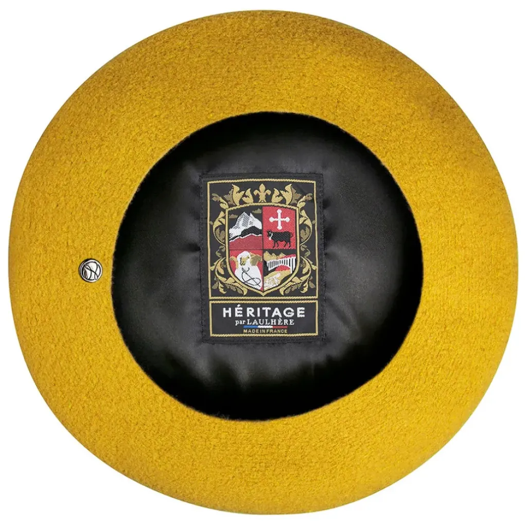 Béret Curcuma en pure laine mérinos, sans bord intérieur pour s’adapter à tous les tours de tête. Doublé d’une coiffe acétate. Ecusson brodé Héritage. Taille plateau : 10. Fabrication 100% française à Oloron-Sainte-Marie. Taille unique.