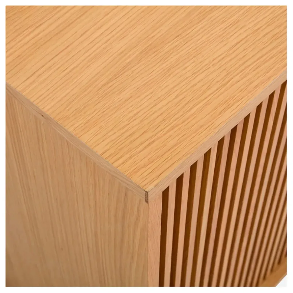Habillée d’une multitude de lattes en chêne, ces meubles ajoutent une touche de caratère discrète à un intérieur.