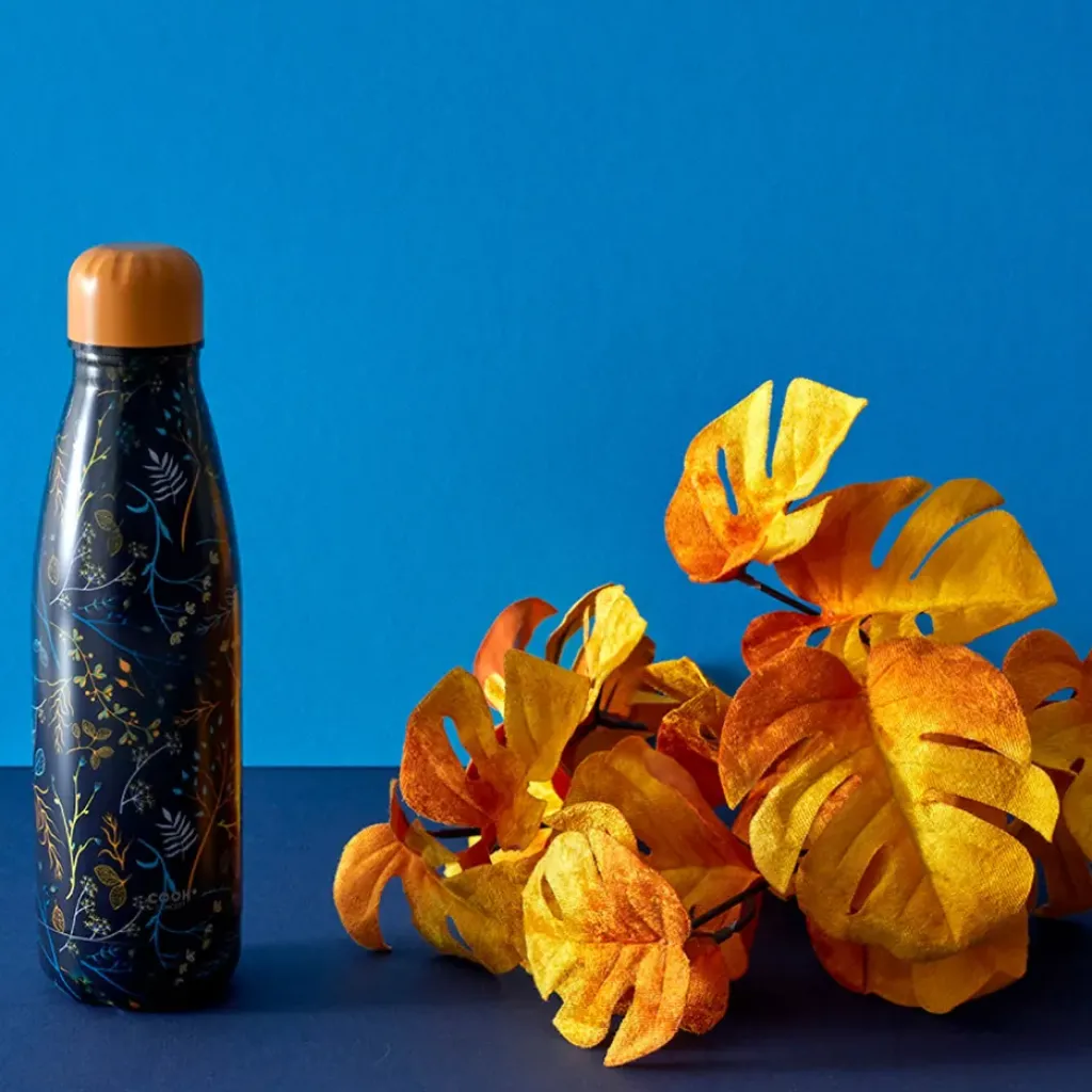 Venez découvrir notre Coffret bouteille isotherme fleurie 50cl de la marque Cook Concept à découvrir sur Fabrique de Stylesverre boroscillicate, coton, acier inoxydable