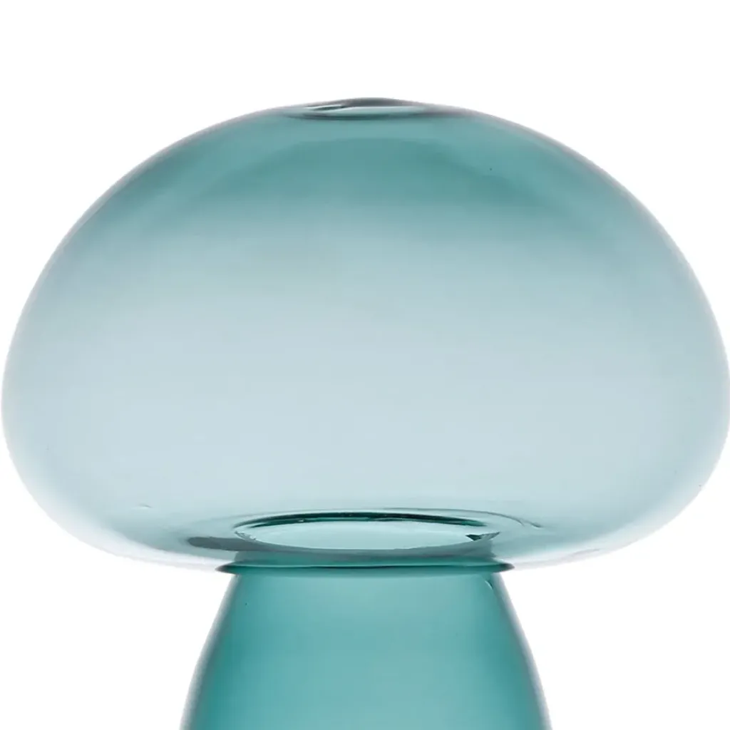 Grâce à ses caractéristiques uniques, ce champignon en verre émeraude se démarque des autres décorations.