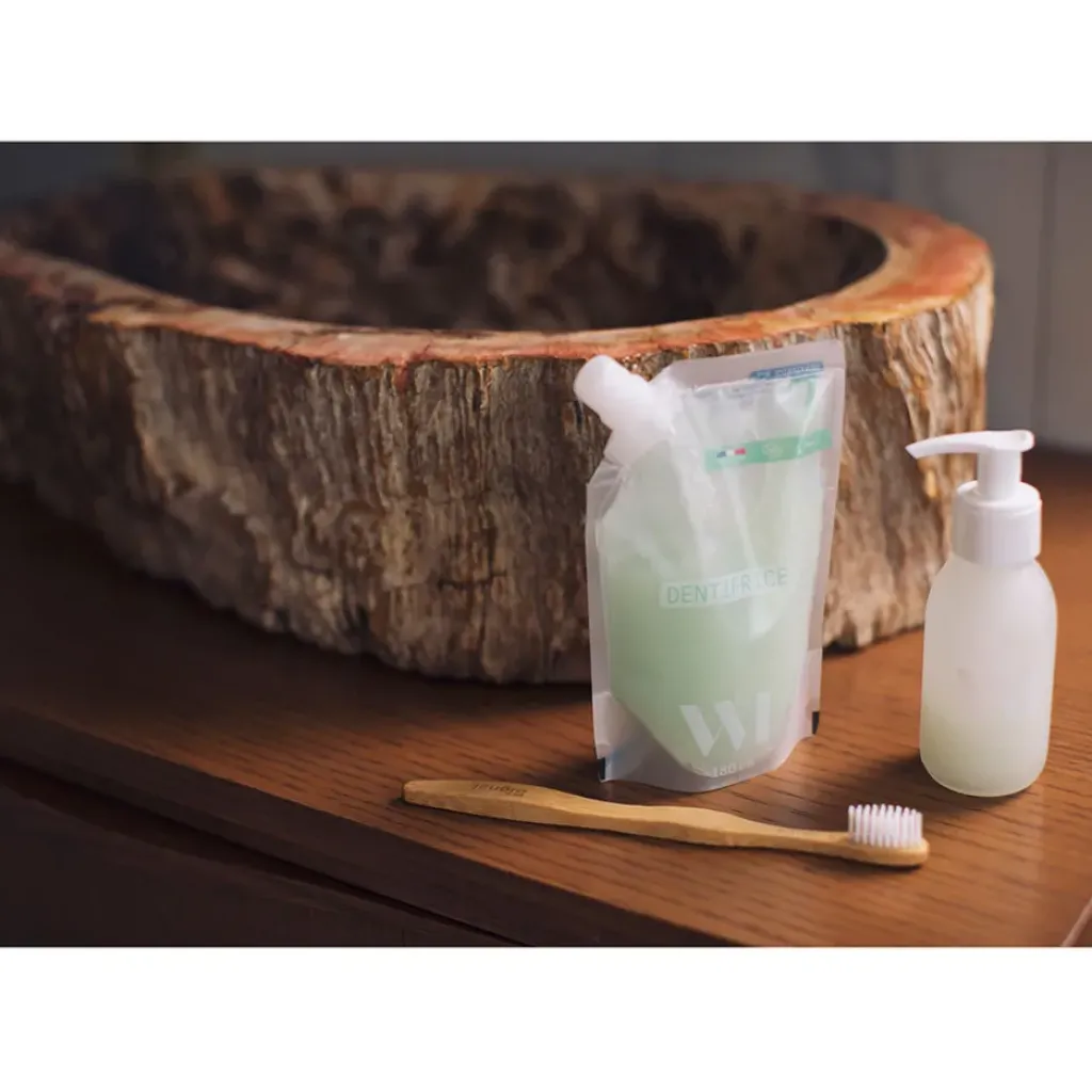 Développée avec des dentistes, sa formule suit les recommandations de l’union française pour la santé Bucco-dentaire et son flacon en verre renforcé® est 100% rechargeable.Papier, PP, PE-LD