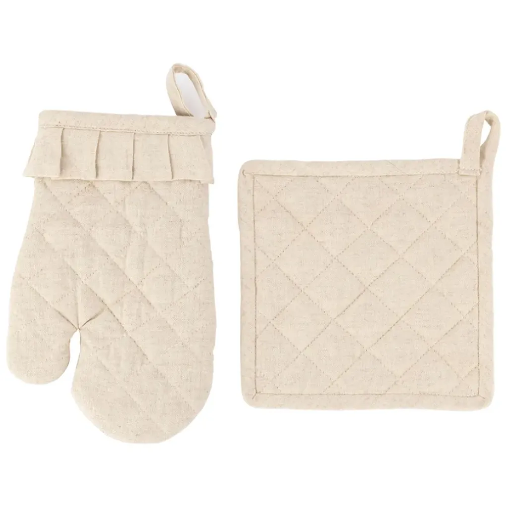 Découvrez le duo indispensable pour votre cuisine : un gant et une manique en coton et lin, conçus pour vous accompagner dans toutes vos aventures culinaires.
