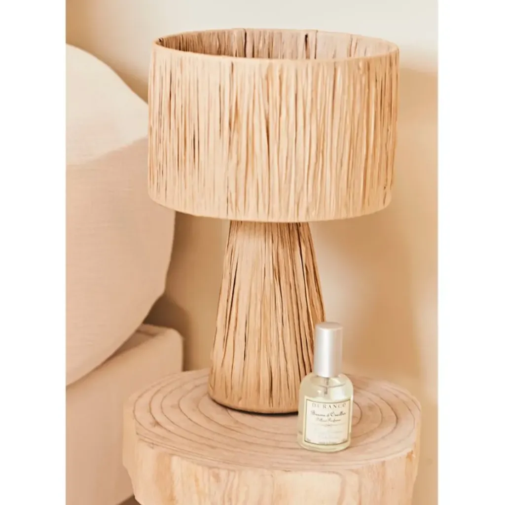 Découvrez notre magnifique lampe en raphia et fer naturel de 30 cm de hauteur.