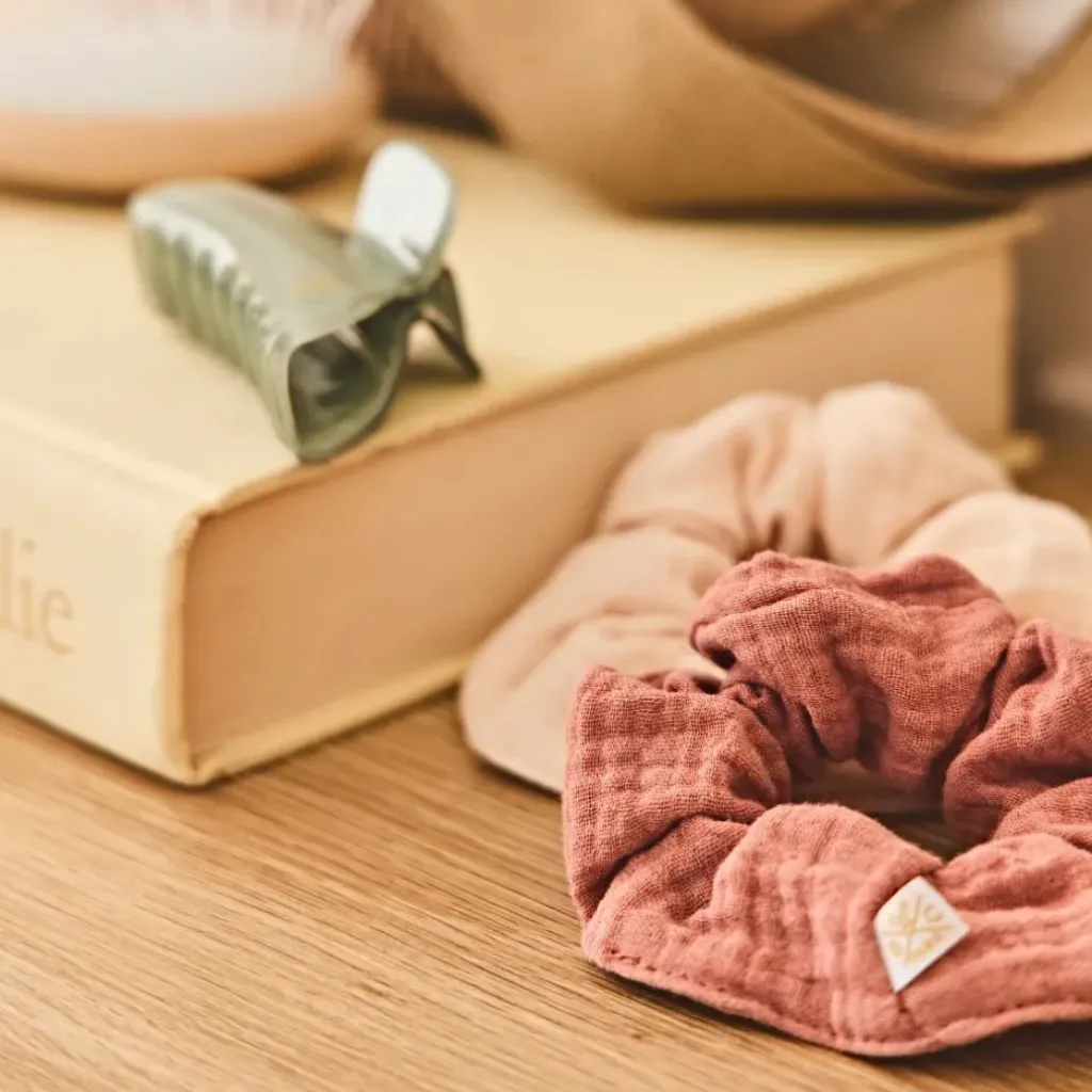Ce lot de 2 chouchous en gaze de coton est parfait pour ajouter une touche de douceur à votre coiffure.