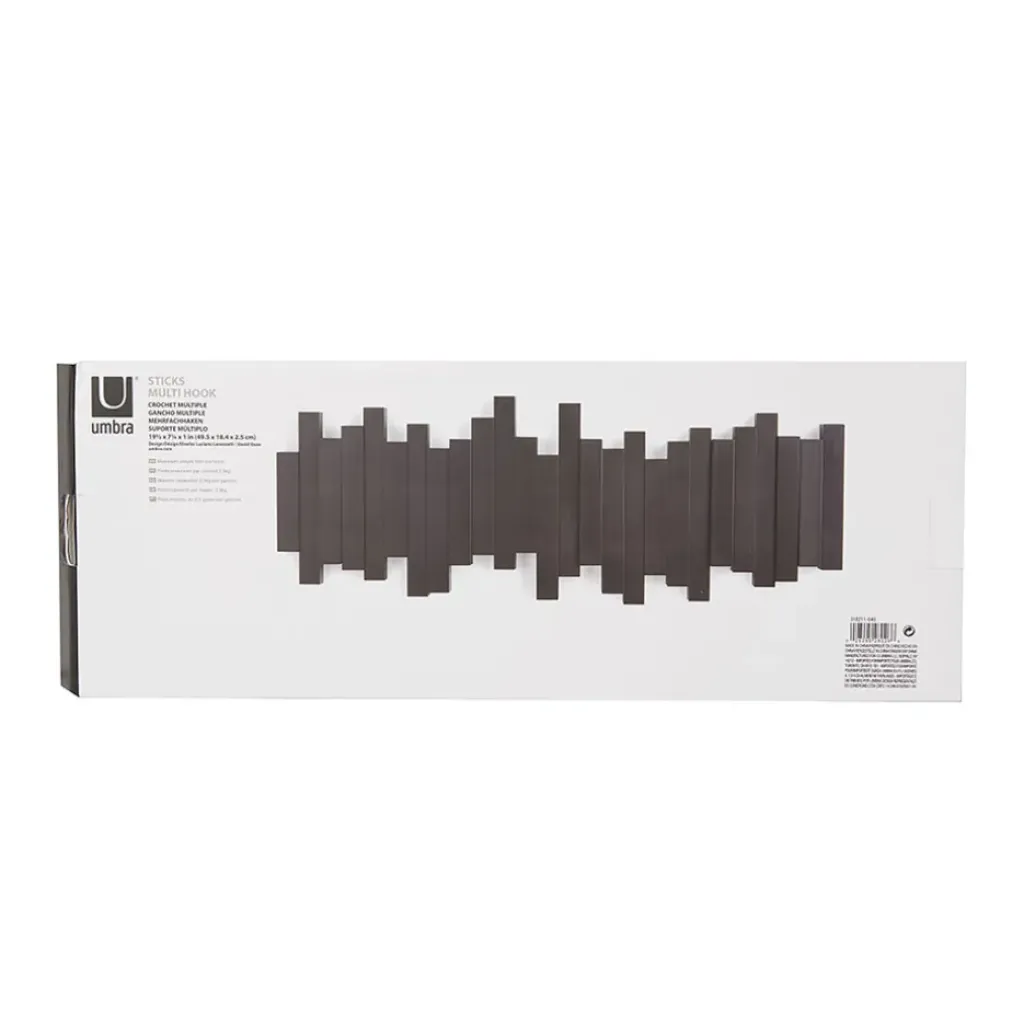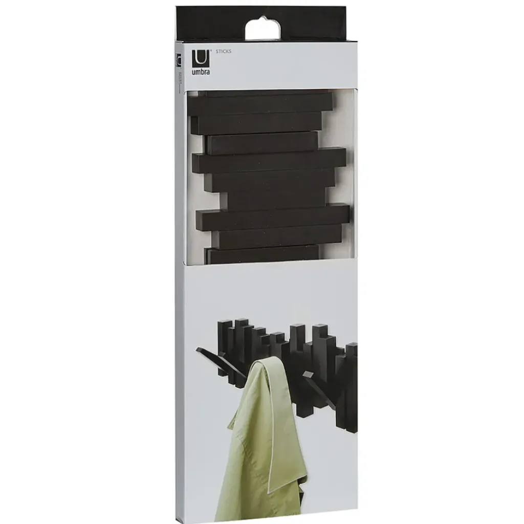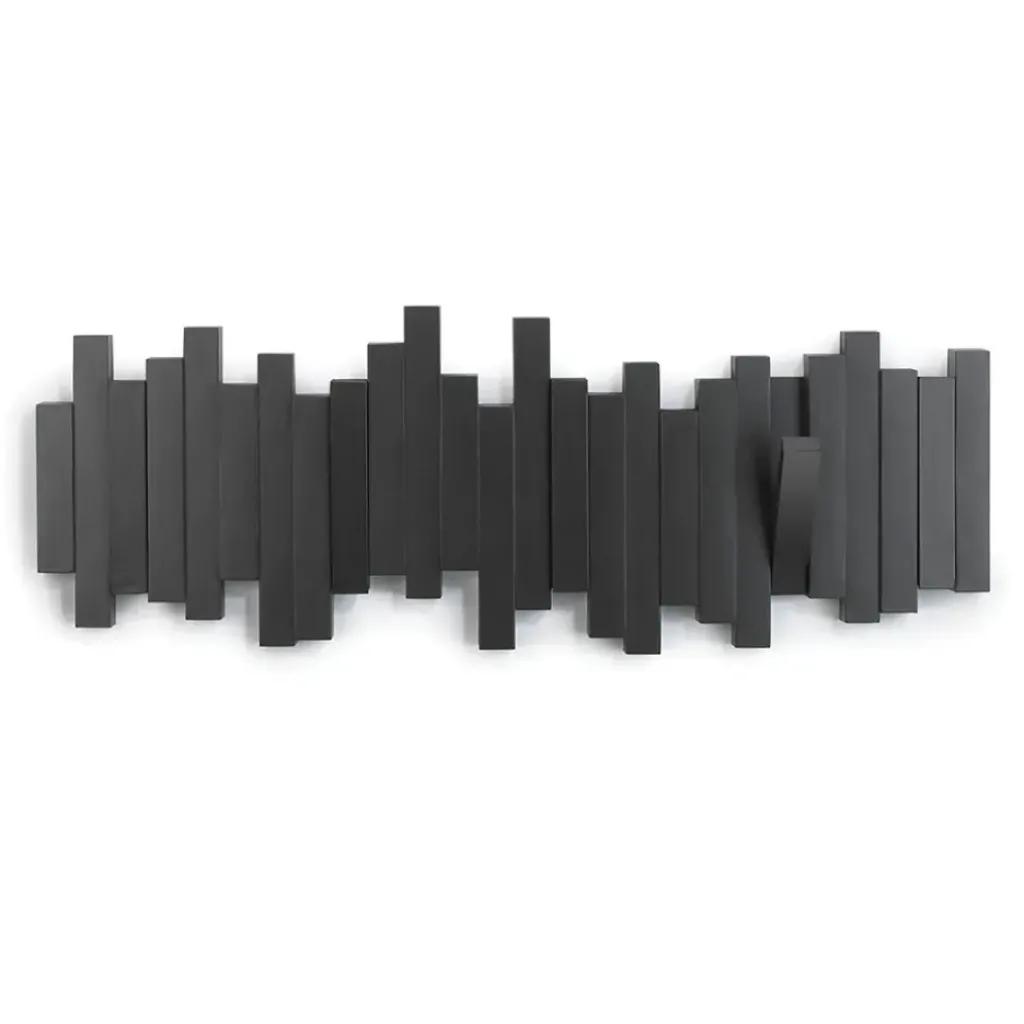 PATERE – Patère murale pratique avec 5 crochets noirs rabattables, idéale pour accrocher vos affaires avec style.Acajou blanc