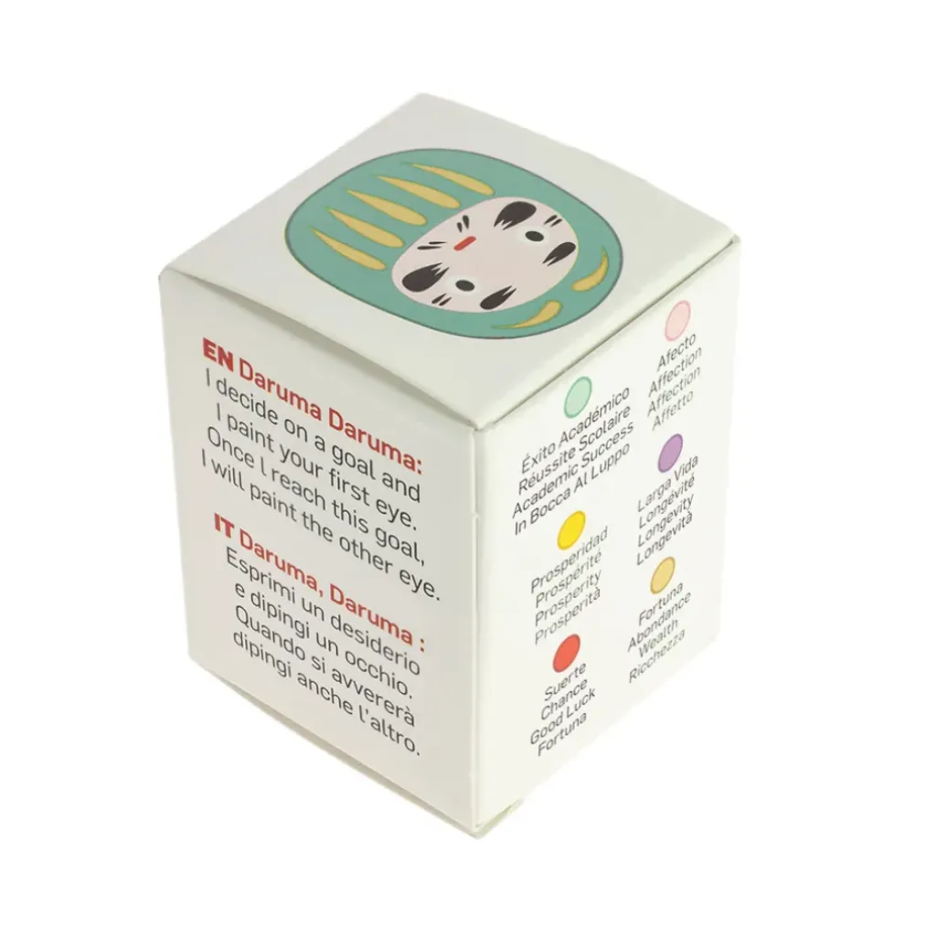 Avec l’une de ses pupilles à remplir lors de la fixation de votre but et l’autre à compléter une fois celui-ci atteint, le Daruma devient un symbole visuel puissant de vos progrès et accomplissements.