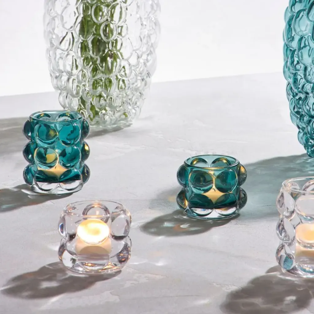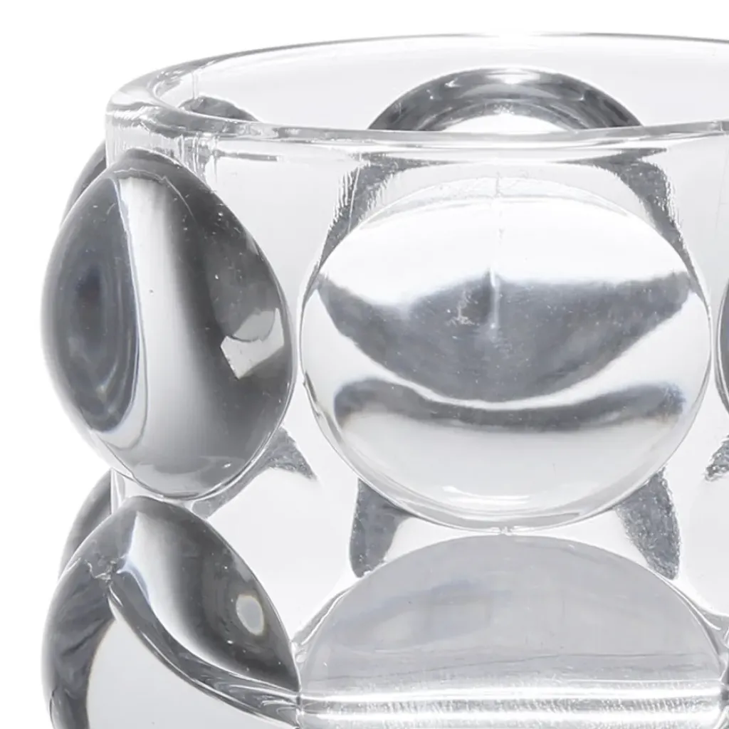 Découvrez le photophore en verre transparent Tanri, d’une hauteur de 6,5 cm.
