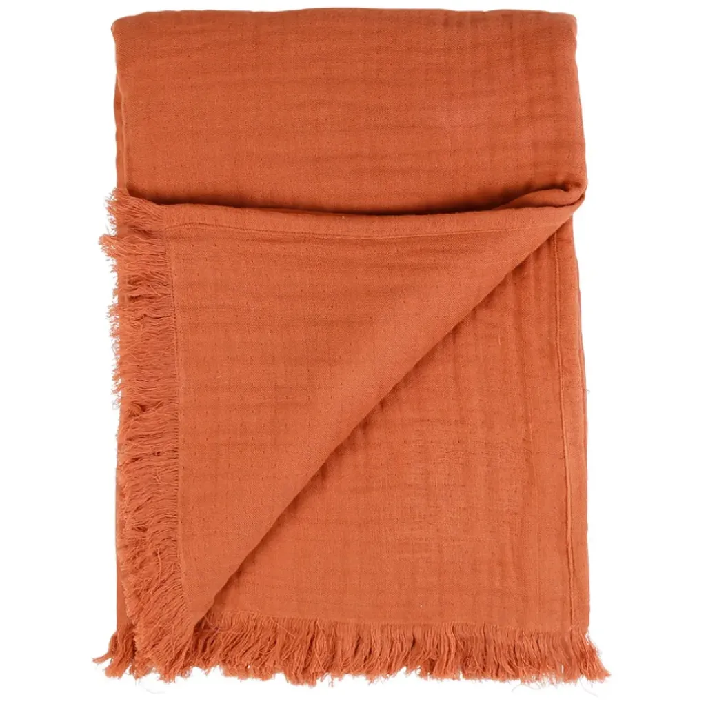 Venez découvrir notre Plaid earth notes terracotta 170x130cm gaze de coton de la marque SEMA Design à découvrir sur Fabrique de Styles.L-10-N-EM0