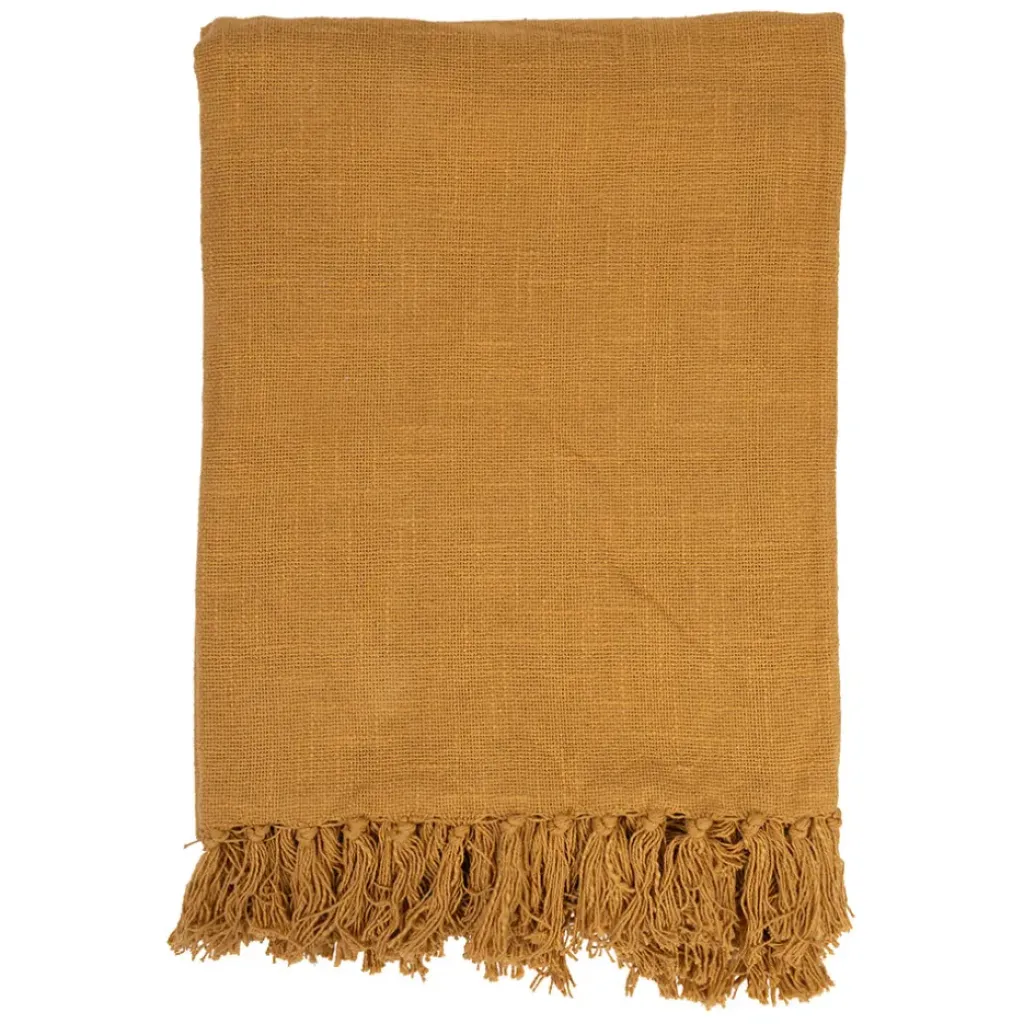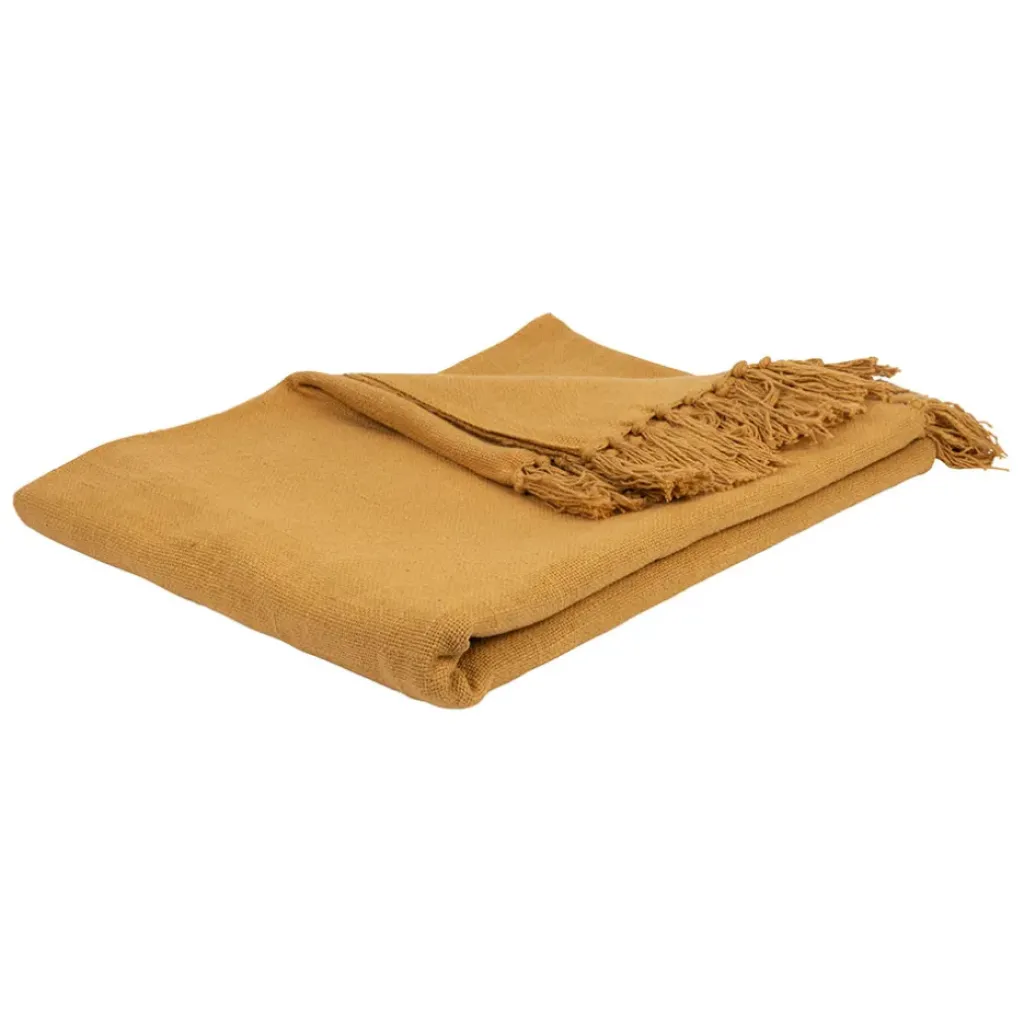 Découvrez le plaid en coton couleur moutarde, un allié indispensable pour transformer instantanément votre espace de vie en un cocon chaleureux et accueillant.
