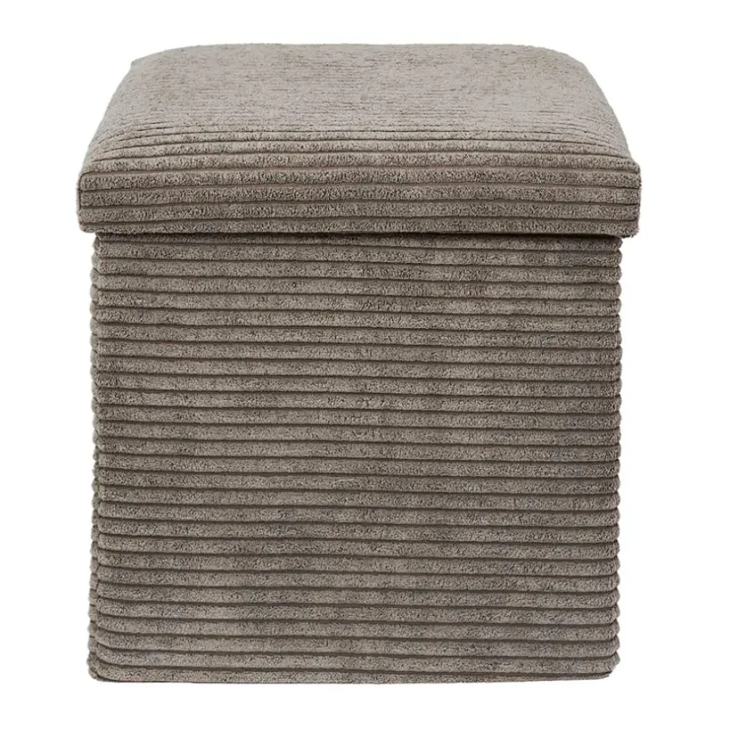 Découvrez le pouf coffre pliable en tissu côtelé taupe, un ajout polyvalent et pratique à votre intérieur.