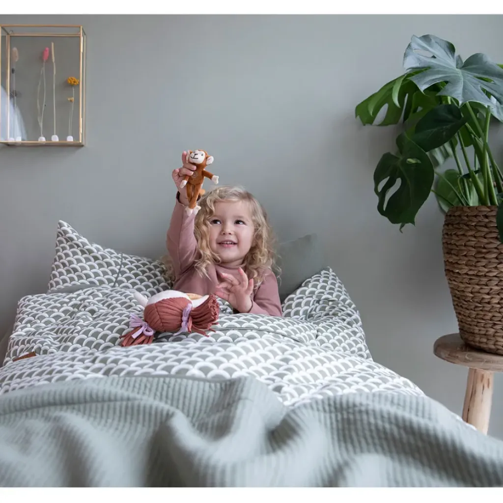 Parfaite pour la maison, la poussette ou les sorties, la poupée peluche Sofia et son petit singe sauront apporter joie et confort à votre enfant.100% polyester