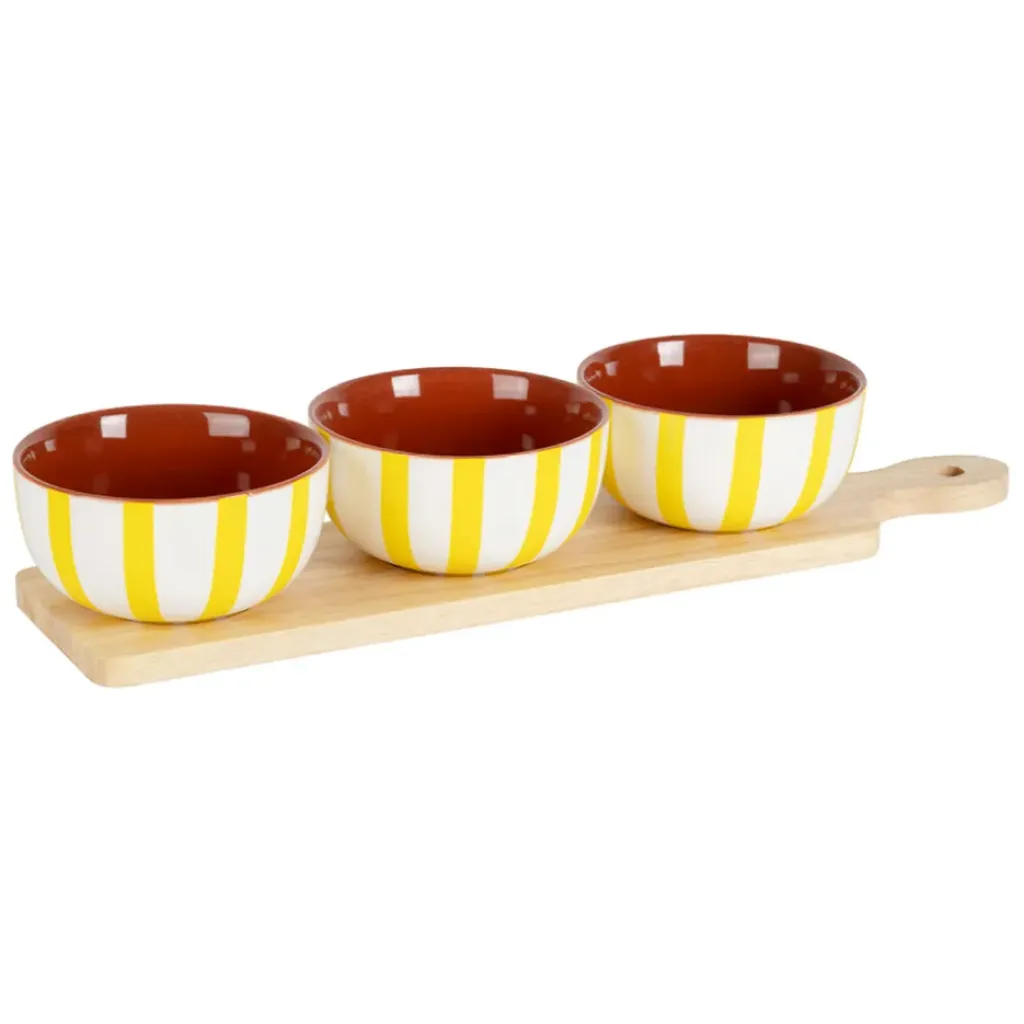 Découvrez ce set apéritif de trois bols en grès, mariage parfait entre fonctionnalité et esthétisme pour égayer vos moments de convivialité.