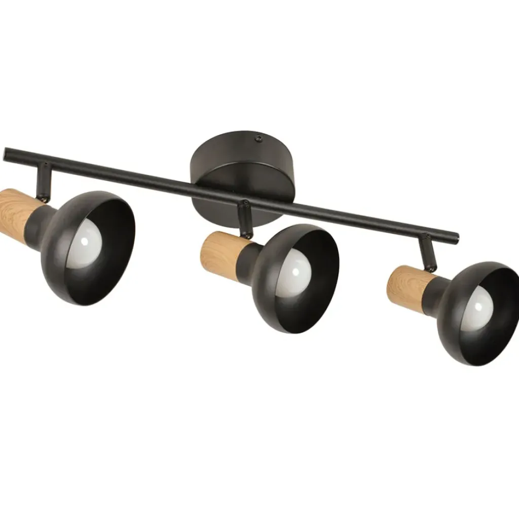 Le spot 3 lumières en métal noir et effet bois Alvar, d’une longueur de 45,5 cm, est un élément d’éclairage moderne et polyvalent.