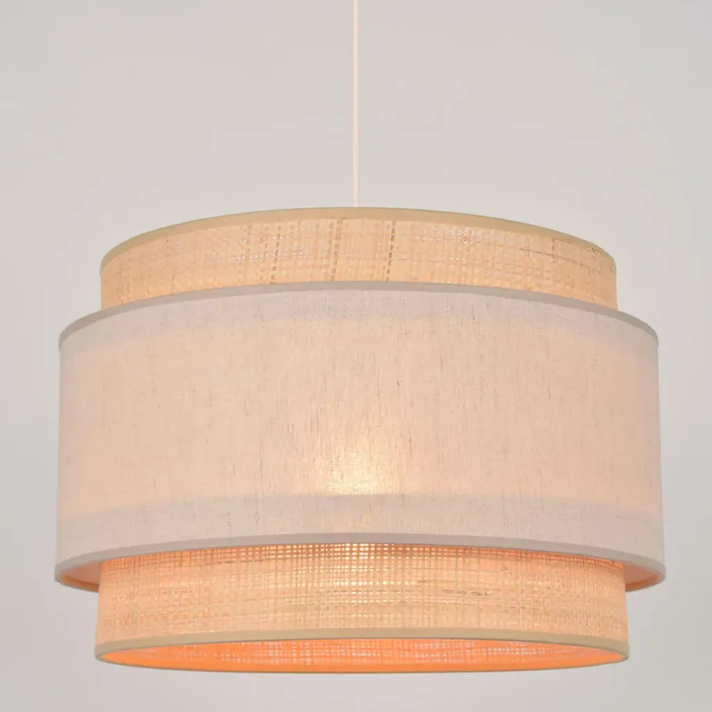 Suspension double cylindre bi-matière en pyla et raphia.