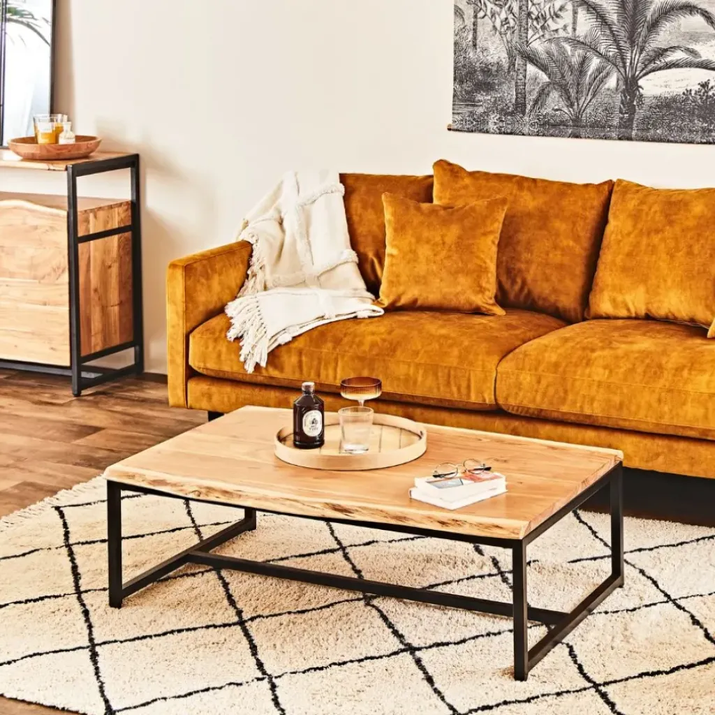 Découvrez la Table basse en acacia et pieds en fer noir – Brooklyn, un véritable bijou pour votre salon.