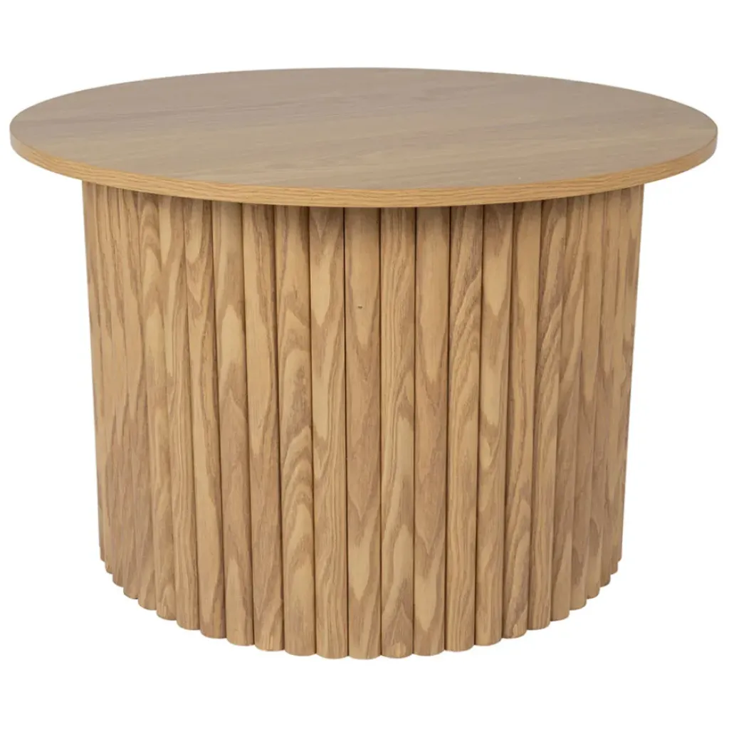 Placez la table basse ronde en panneau de bois naturel Saori au cœur de votre salon, pour un intérieur contemporain et convivial.