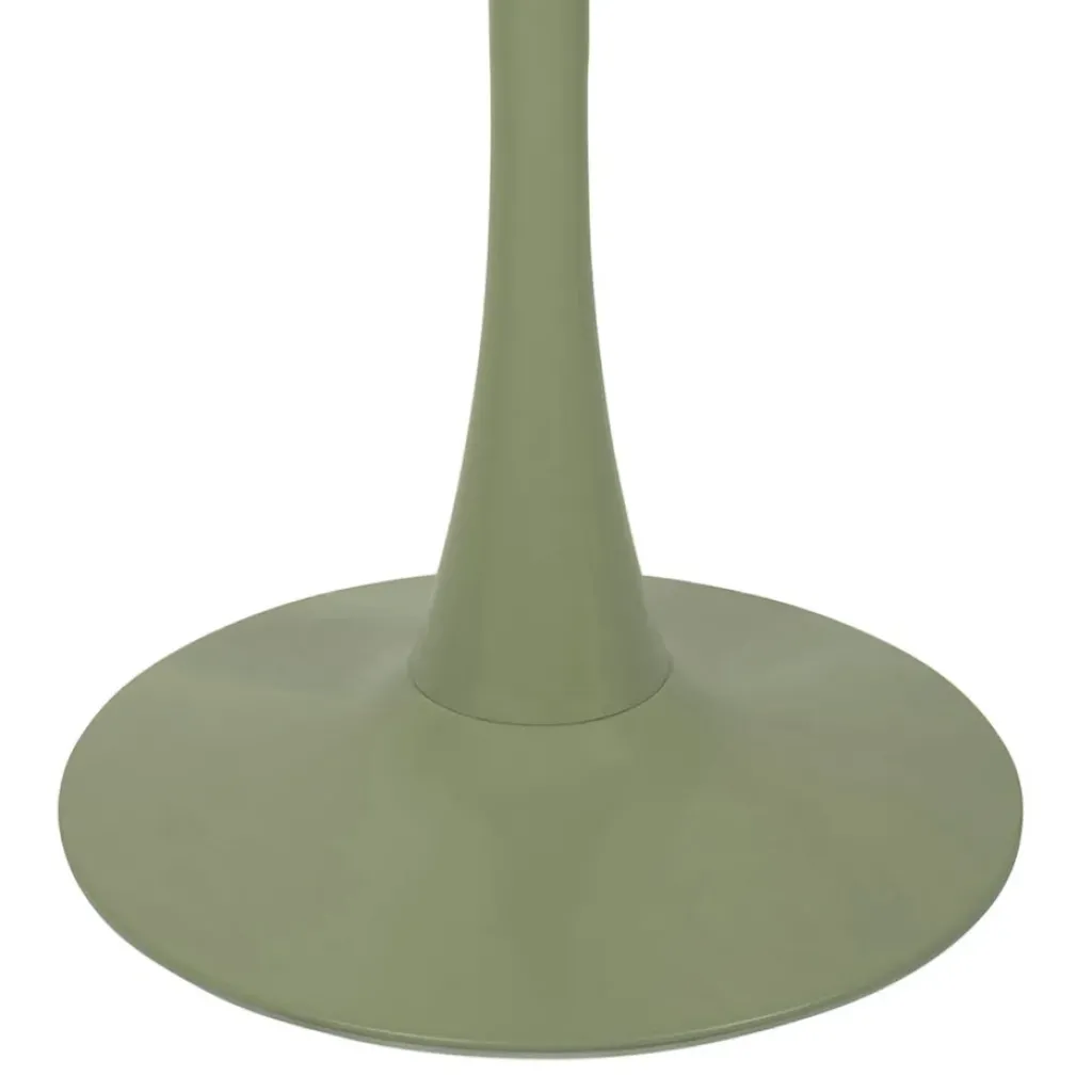 La table est réalisée en fer de couleur kaki, ce qui lui confère une résistance aux intempéries et une longévité remarquable.