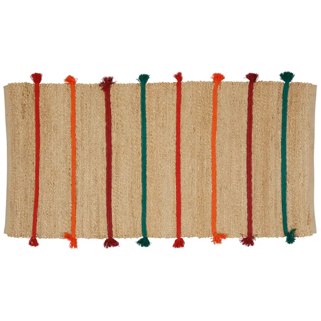 Découvrez le magnifique tapis multicolore Seguia en jute et coton, de dimensions généreuses de 140x70cm, qui ajoutera une touche de style et de praticité à votre intérieur.