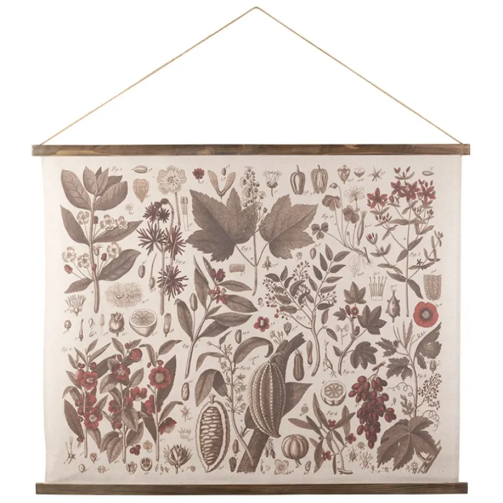 Sublimez votre espace avec notre toile en tissu et cadre en sapin brun (100x81cm) ornée d’un dessin botanique captivant.