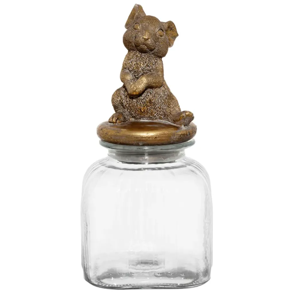 Ajoutez une touche de fantaisie à votre cuisine avec ce bocal en verre doté d’un charmant couvercle en forme de lapin mordoré.