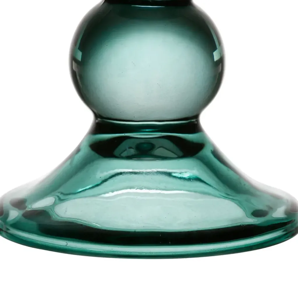 Apportez une touche de raffinement à votre intérieur avec le bougeoir Alphe en verre vert d’eau, d’une hauteur de 10 cm.