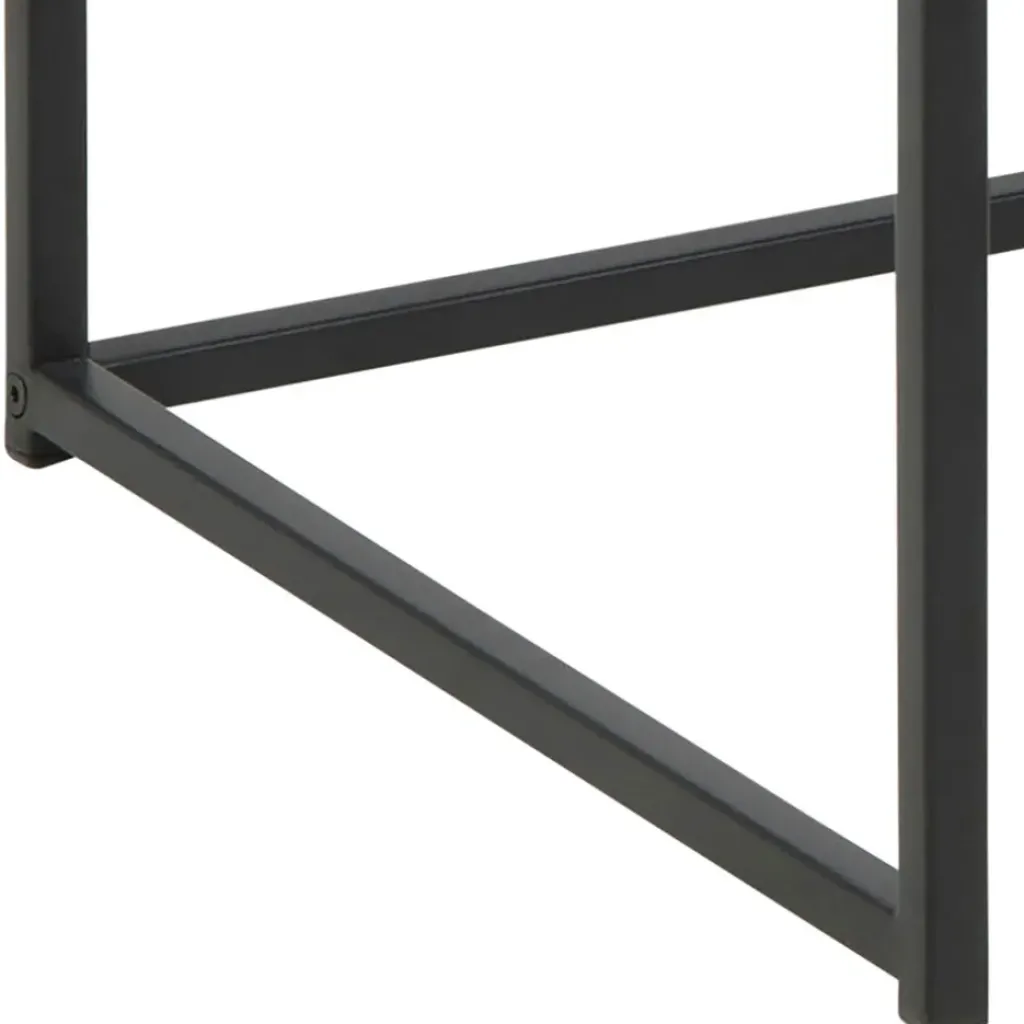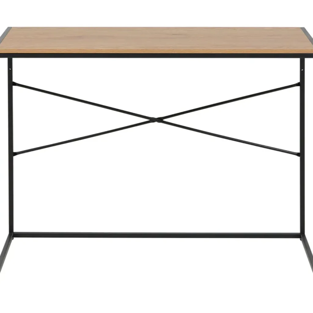 Pratique et durable, ce meuble trouvera sa place dans votre chambre, bureau ou bien salon !Plateau en papier rugueux chêne sauvage mat. Piètement en métal thermolaqué noir mat rugueux.