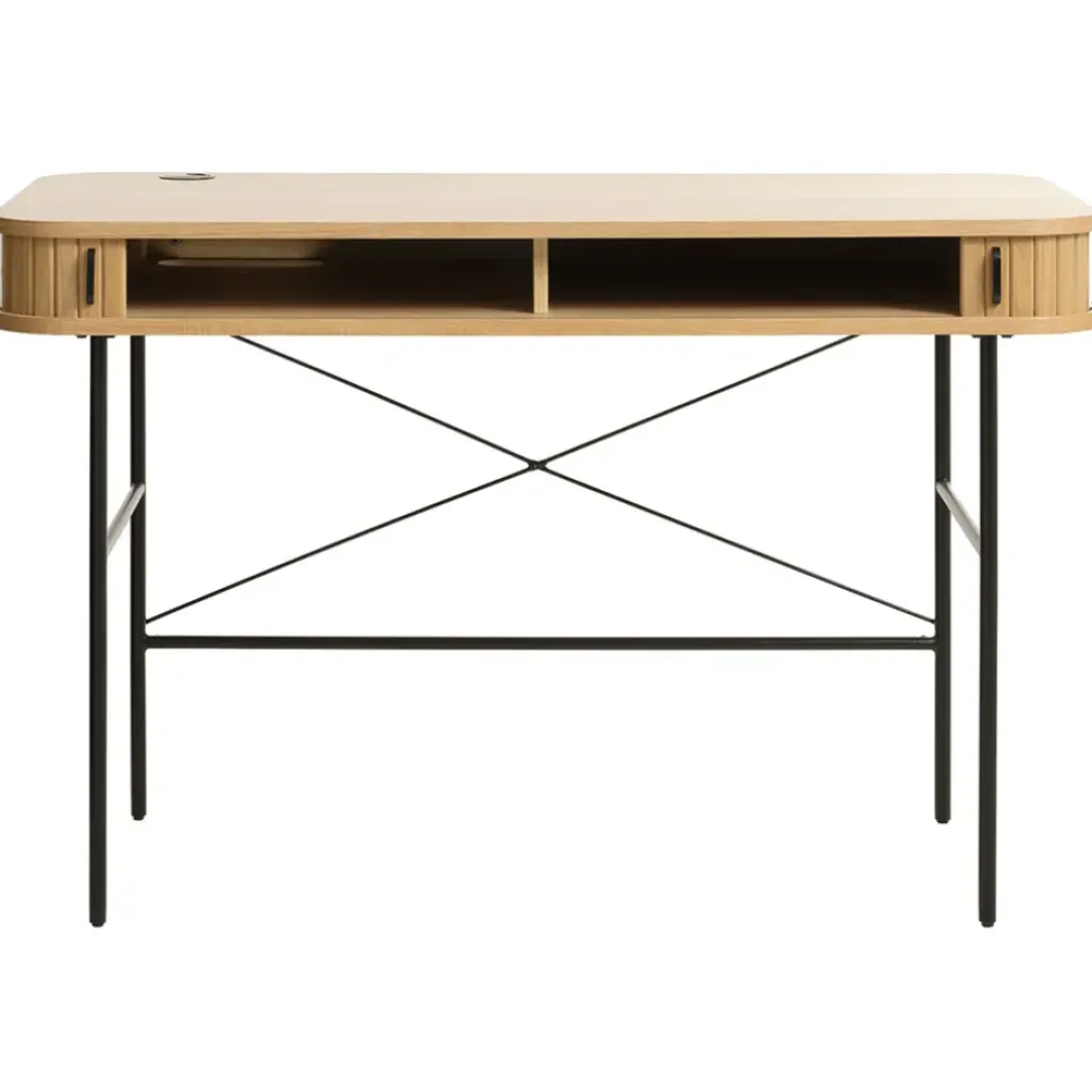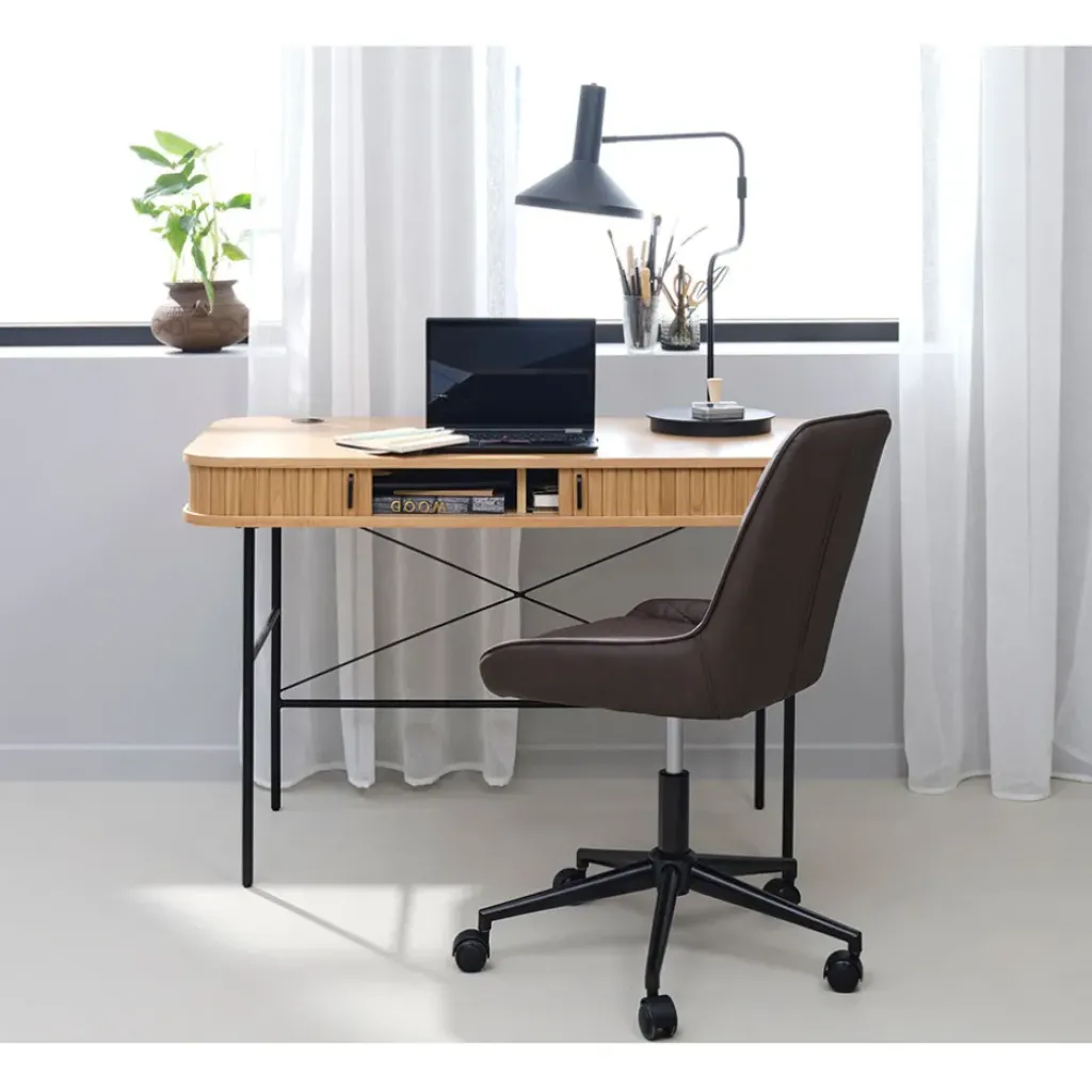 Découvrez le bureau Nola en placage chêne naturel, alliant design minimaliste et fonctionnalité.