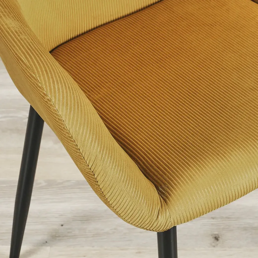 Avec ses lignes épurées et son tissu moutarde en velours doux, cette chaise trouvera sa place dans n’importe quelle pièce de votre maison.Polyester, Fer, PU, Bois – Contreplaqué