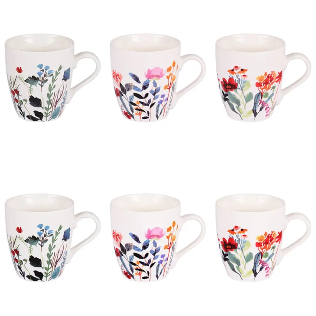 Chaque tasse est ornée d’un design végétal qui évoque la douceur des champs fleuris, parfait pour égayer vos moments de convivialité.