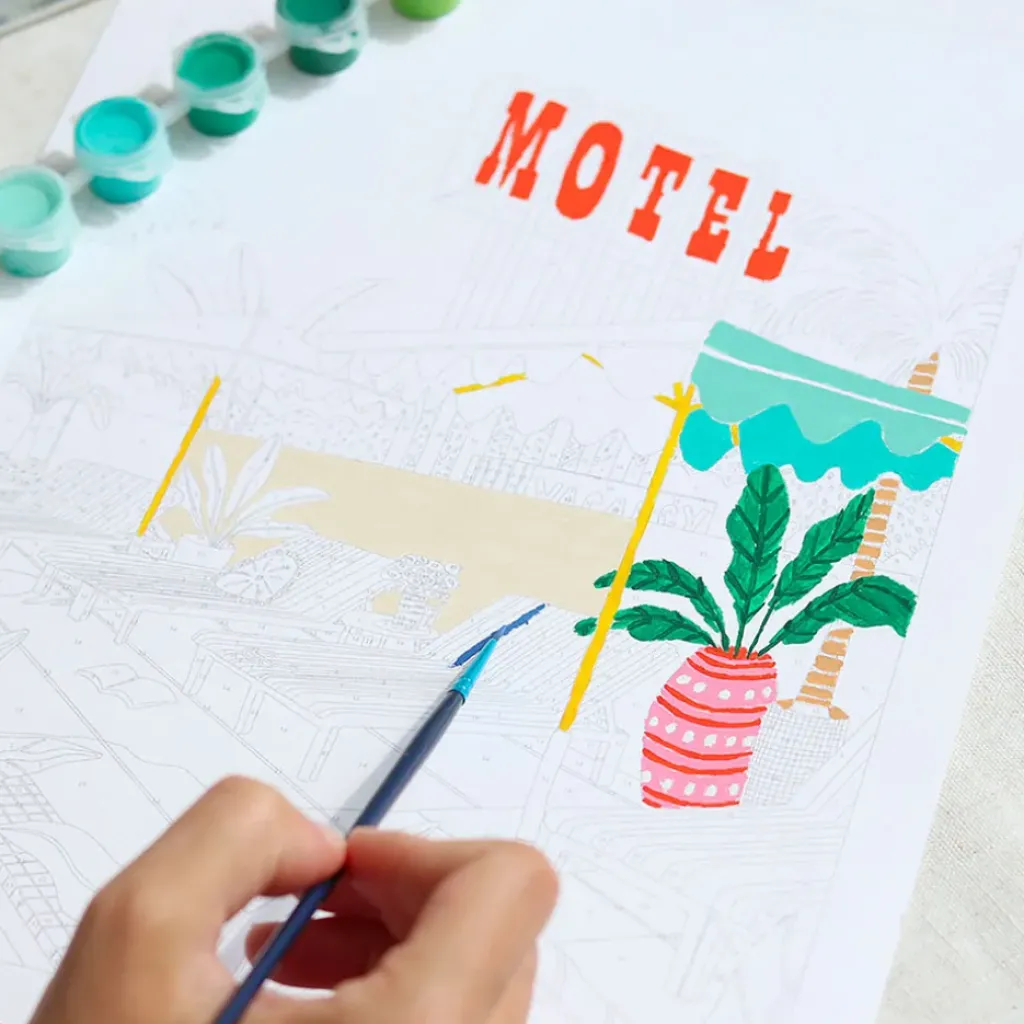 Découvrez le Coffret peinture au numéro – the motel pool, une véritable invitation à la créativité et à l’évasion artistique !