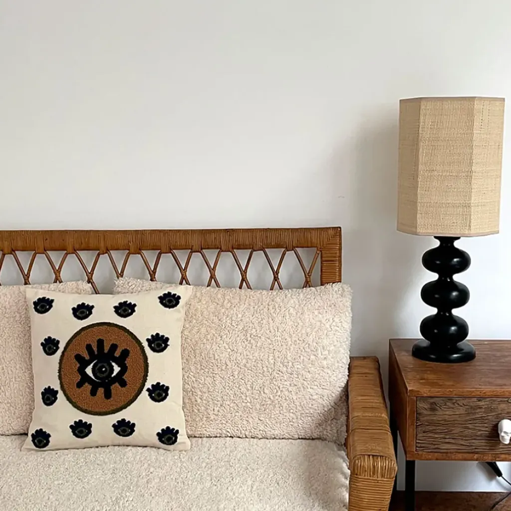 Apportez une touche mystique et tendance à votre intérieur avec le coussin en coton « Œil Protecteur ».