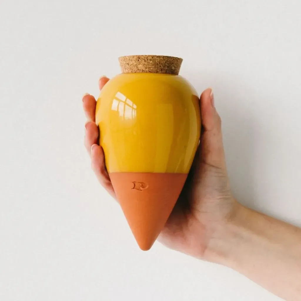 Découvrez le diffuseur d’eau en argile jaune moutarde, un produit ingénieux qui transformera votre routine de jardinage.