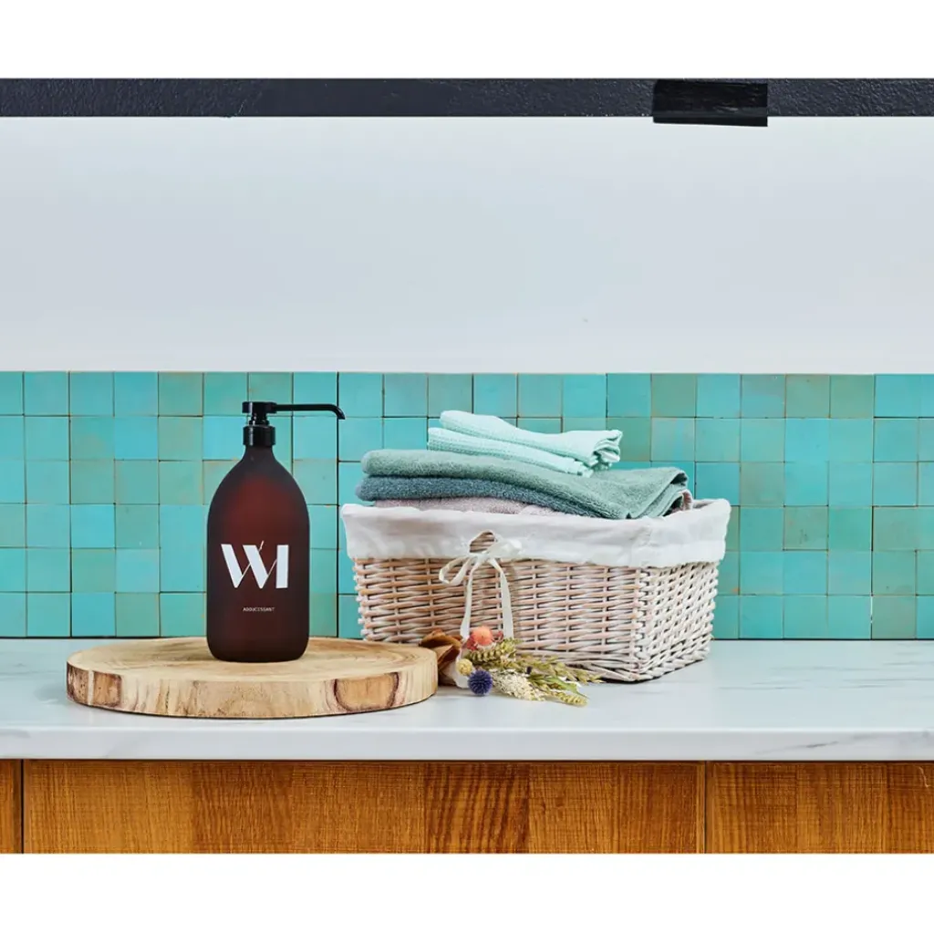 Pour un esprit déco même jusqu’à la buanderie, son joli flacon en verre classique de 1000mL est rechargeable.Plus de 30% de savon. Valeur actuelle 72% de savon.