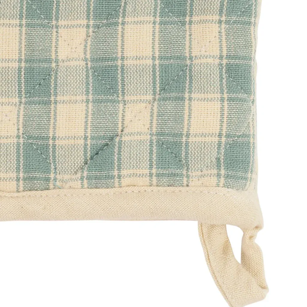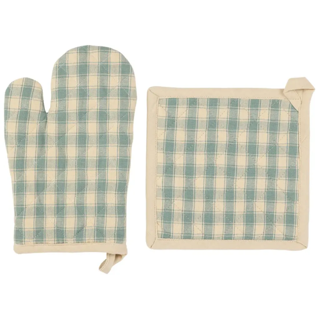 Découvrez le charme intemporel de notre ensemble gant et manique en coton vichy sauge – Campagne.
