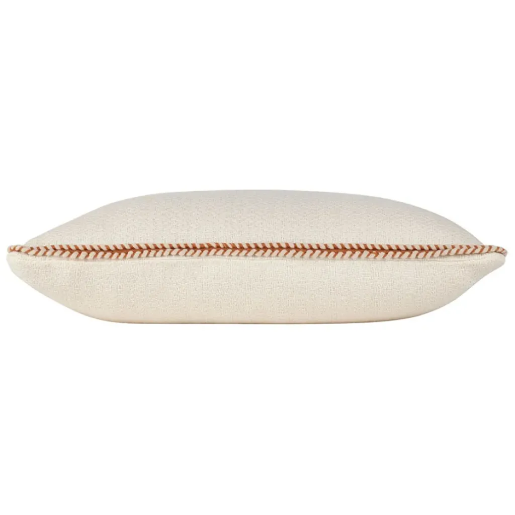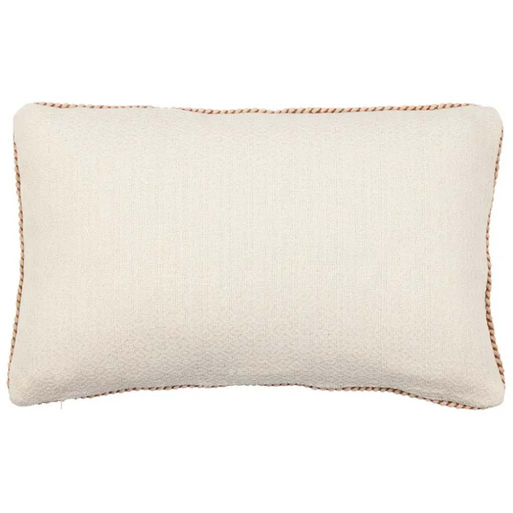 Le contour subtilement tressé en terracotta apporte une note chaleureuse et originale, idéale pour rehausser la sobriété de l’écru.