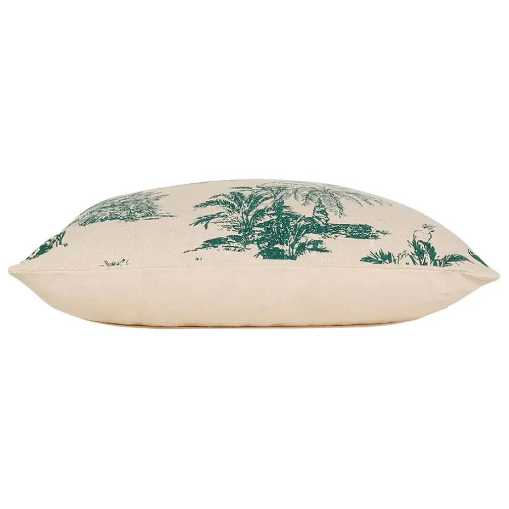 Cette housse en coton émeraude et écru est bien plus qu’un simple accessoire de décoration.