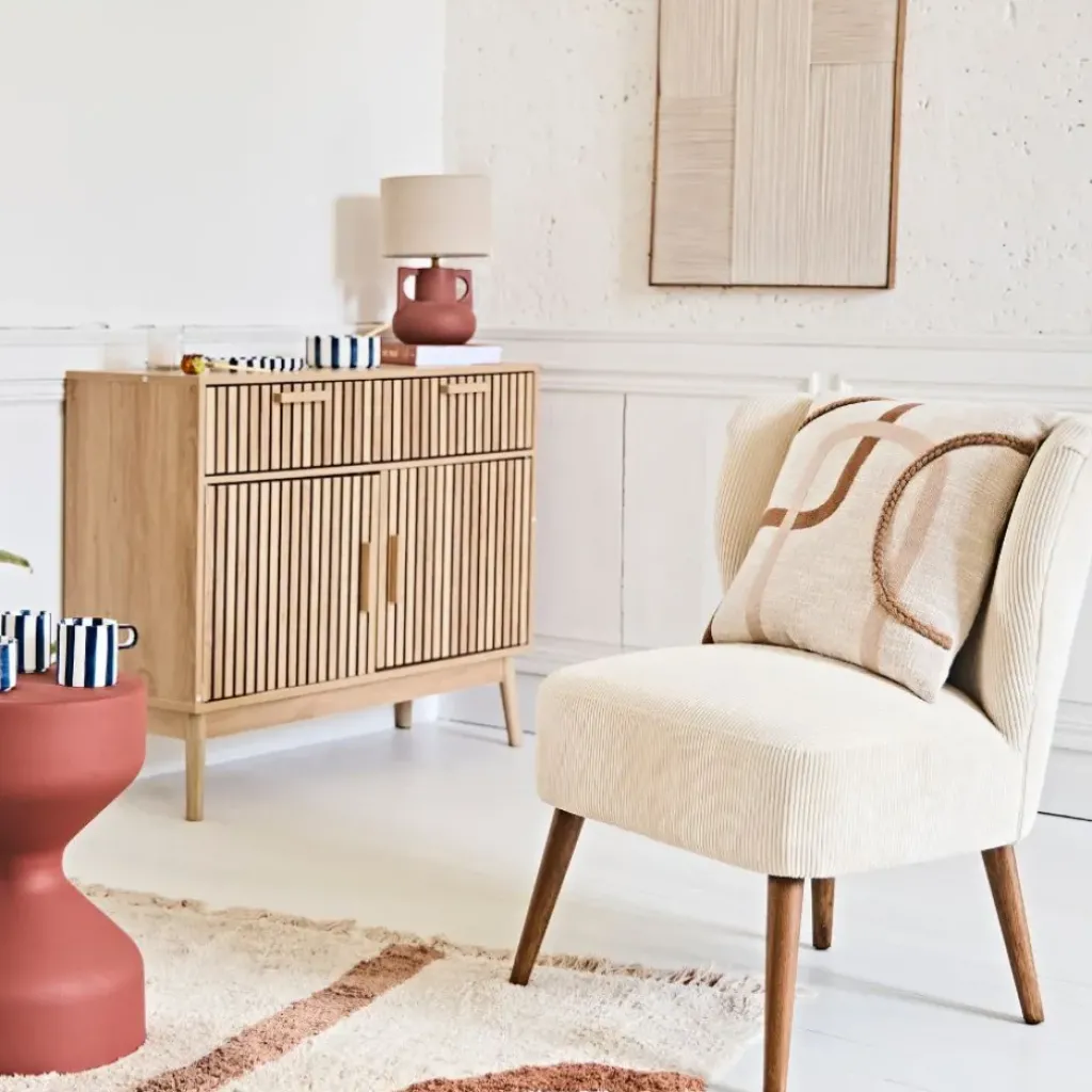 Sa teinte écrue, neutre et douce, se marie avec le terracotta vibrant pour créer un contraste attrayant, apportant à la fois confort et caractère à votre espace de vie.