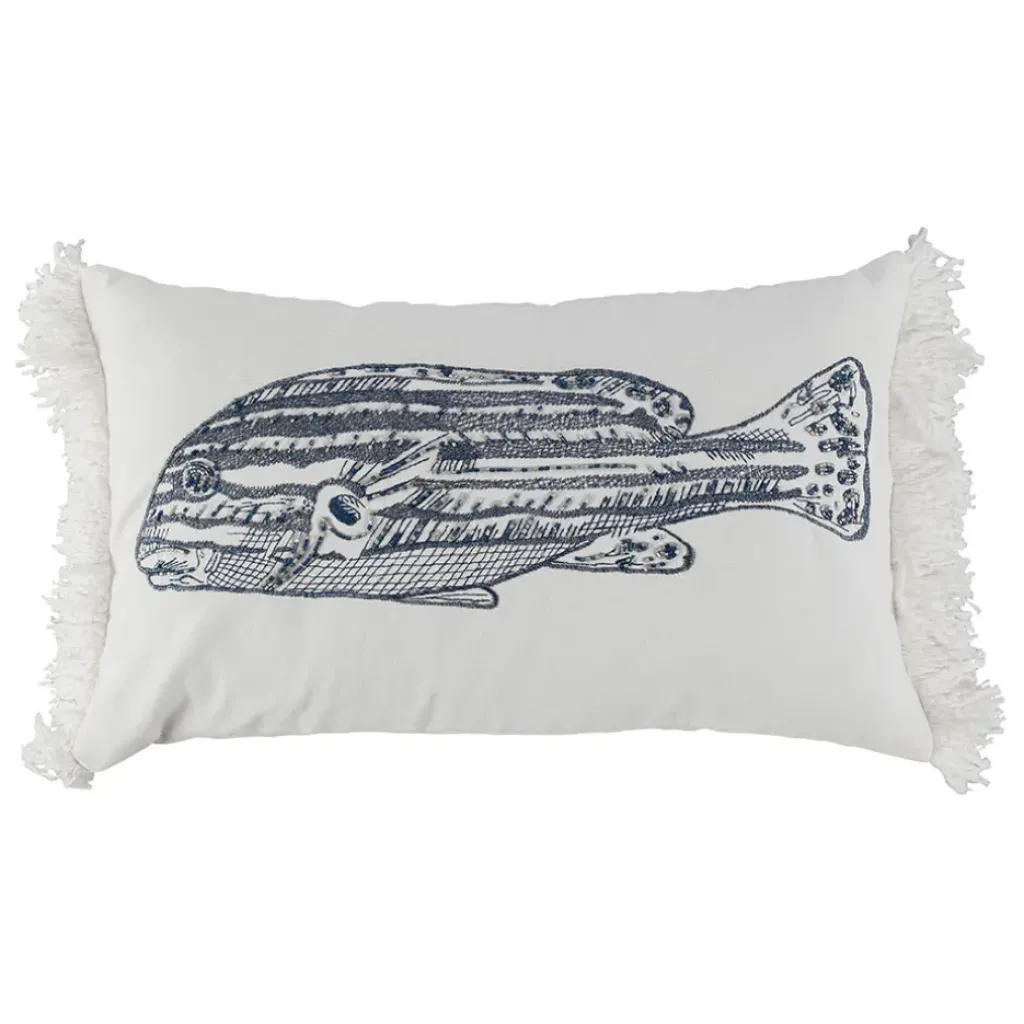 Découvrez notre housse de coussin en coton poisson bleu marine 50x30cm – Bord De Mer, idéale pour apporter une touche de fraîcheur à votre décoration intérieure.