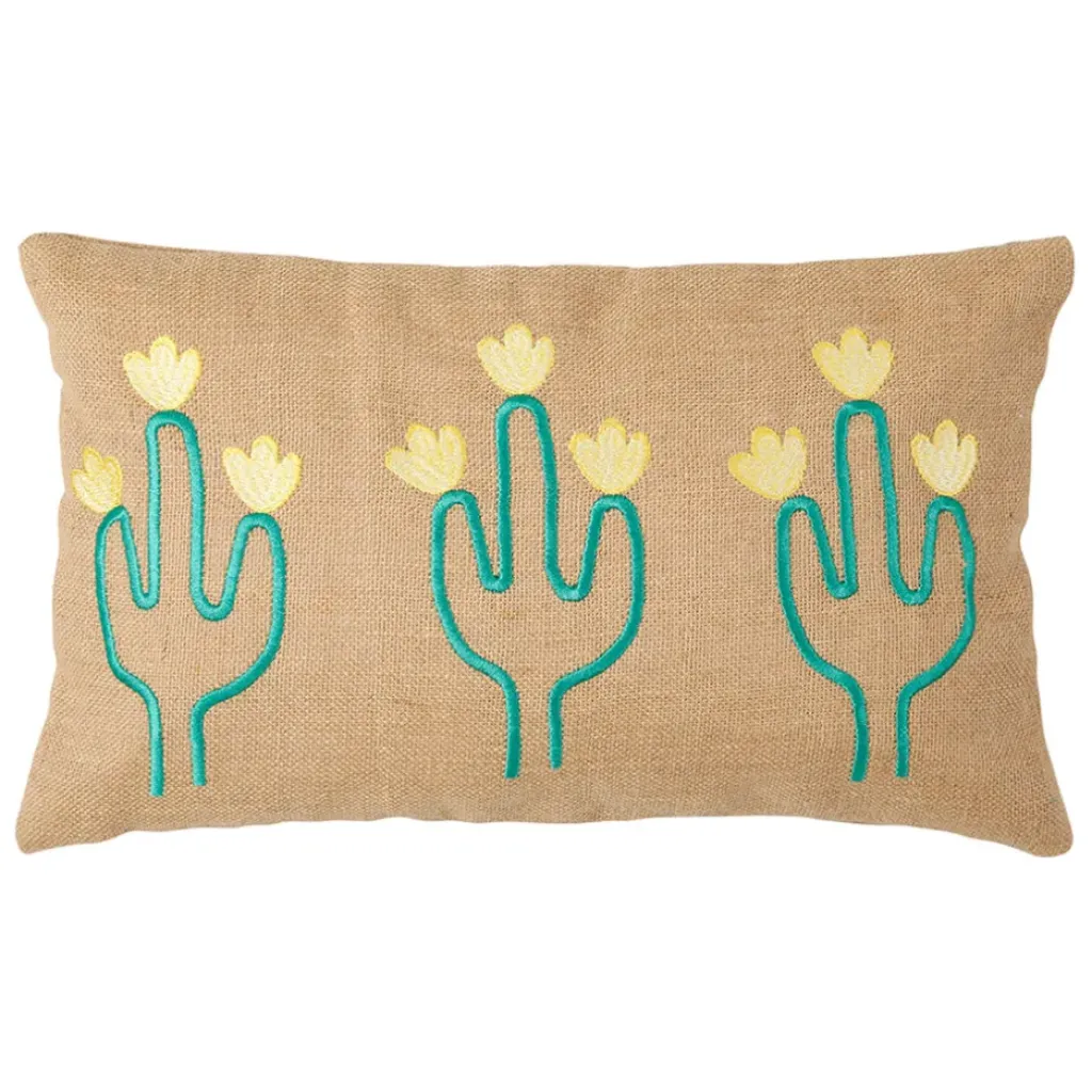 Cette housse de coussin combine l’authenticité de la jute naturelle avec la fraîcheur du coton vert.