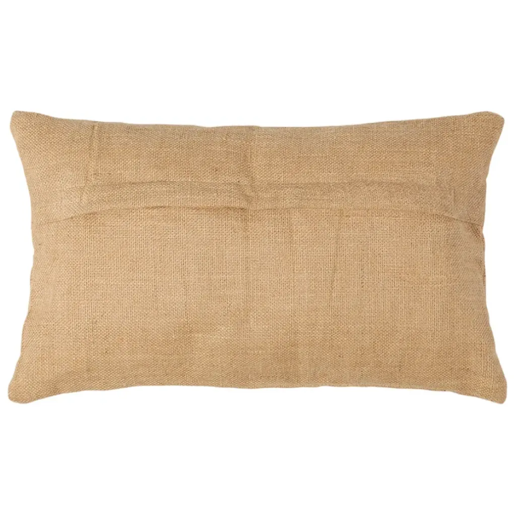 Découvrez notre housse de coussin Patchuca en jute naturel et coton vert, mesurant 50x30cm.
