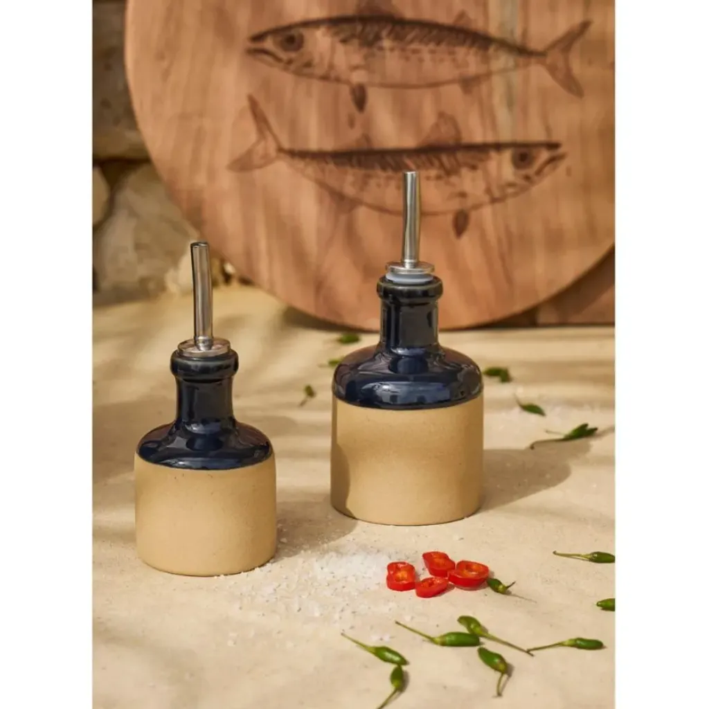 Découvrez comment notre ensemble en grès bleu marine, composé d’un huilier et d’un vinaigrier aux capacités respectives de 27,5 cl et 17,5 cl, insuffle une nouvelle vie à votre table.