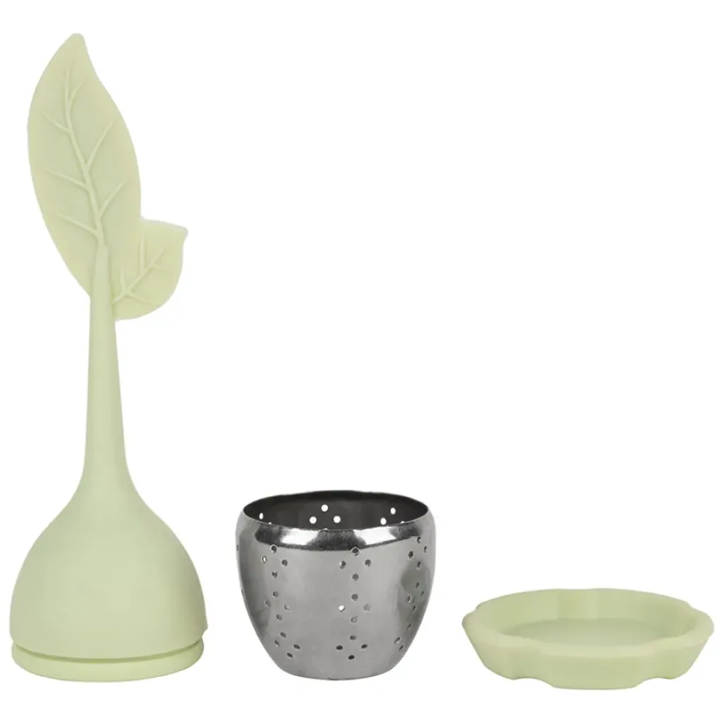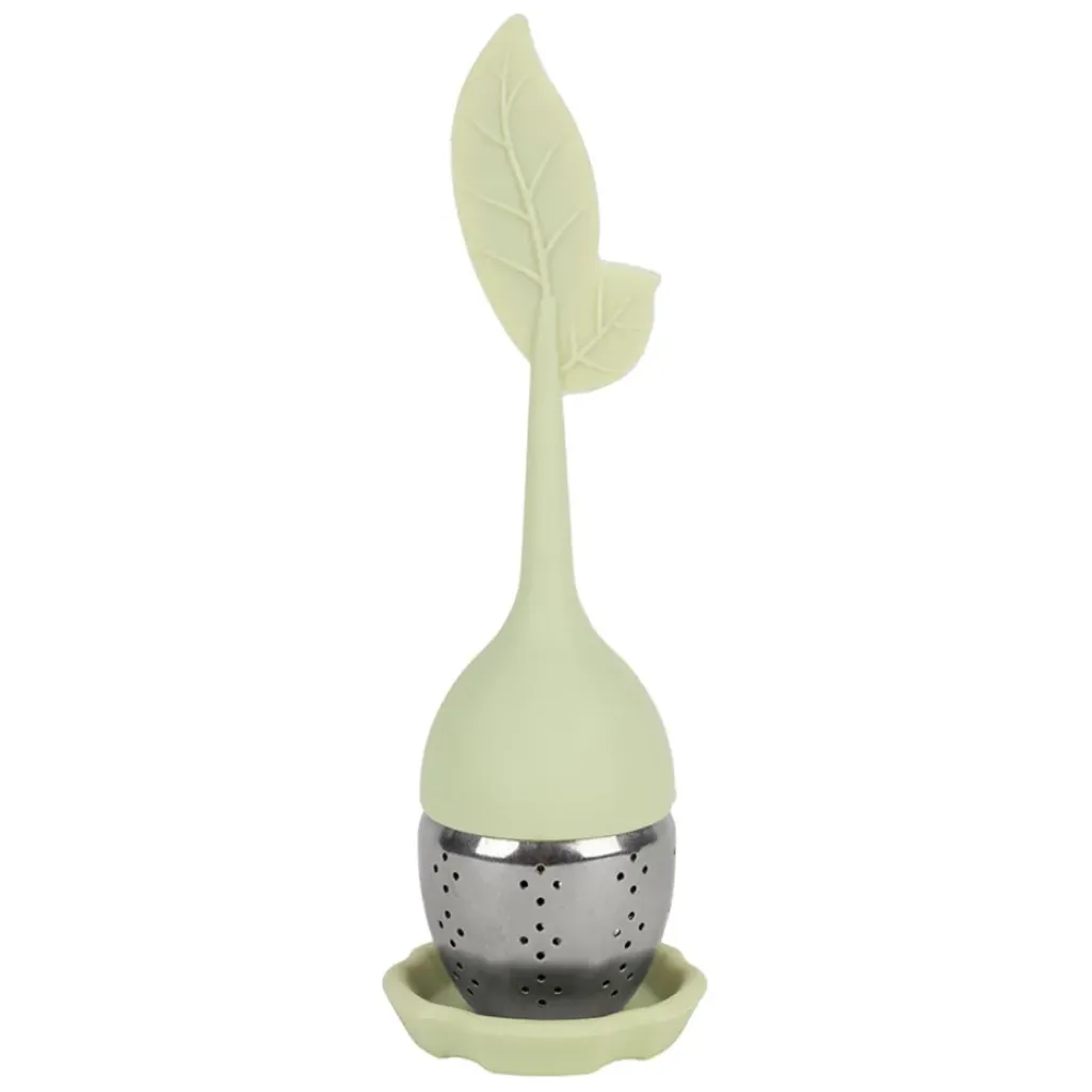 Cet infuseur se distingue par sa forme en feuille unique qui permet une immersion optimale des feuilles de thé.