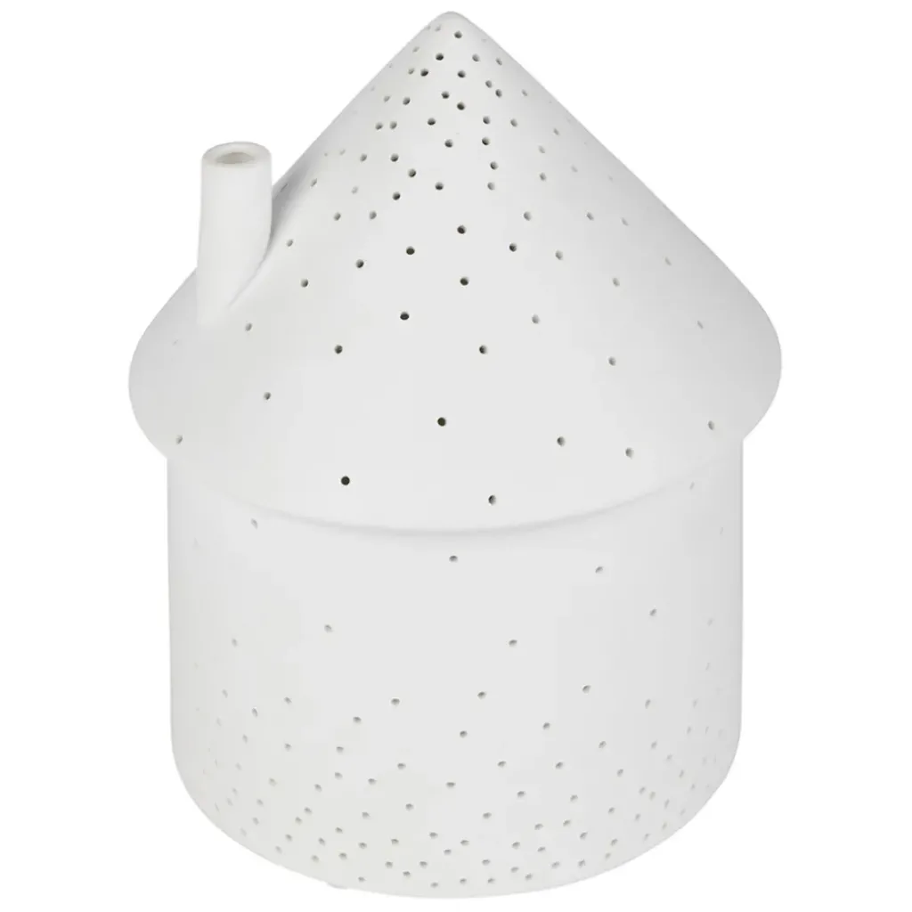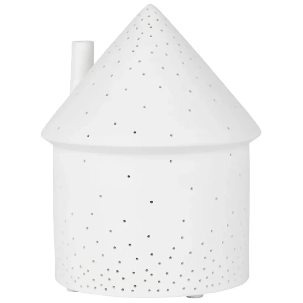 La lampe maison en porcelaine blanche Beezz, mesurant 17 cm de hauteur et dotée d’un éclairage LED, crée une ambiance chaleureuse et accueillante.