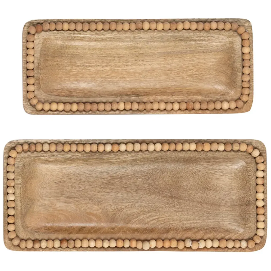 Découvrez ce magnifique lot de 2 plats en manguier naturel, parfait pour créer une ambiance estivale et marine chez vous.