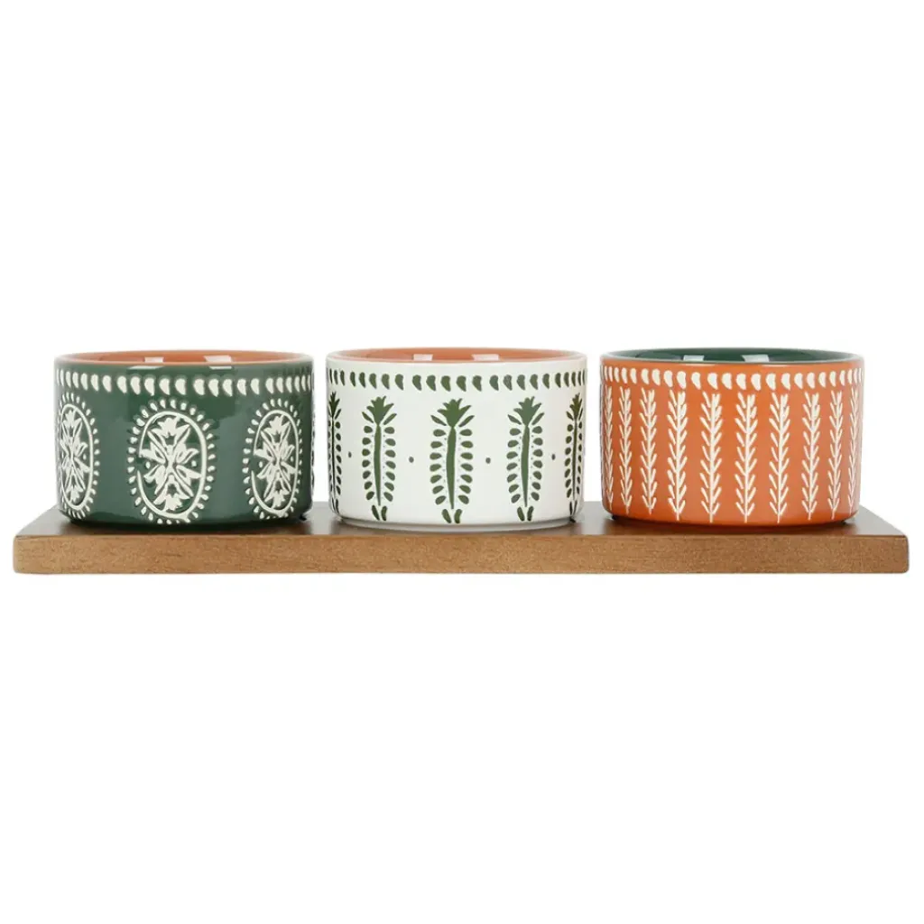 Découvrez notre ensemble unique de trois coupelles en grès accompagné de son plateau en terracotta, une véritable invitation à sublimer vos moments à table.