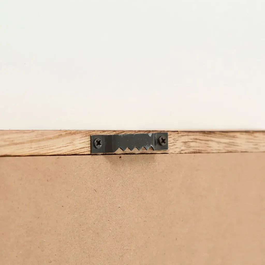 Le cadre en bois de couleur naturelle apporte une touche apaisante qui contraste agréablement avec des murs clairs aussi bien qu’avec des tons plus foncés.