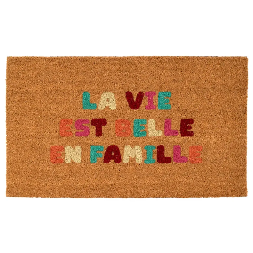 Découvrez notre paillasson en coco multicolore de la collection ‘La vie est belle’, idéal pour apporter une touche de gaieté à votre entrée !