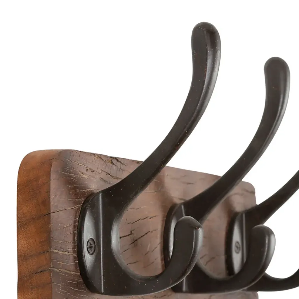Découvrez la patère 3 crochets en shorea et ferrier brun 31x17cm – Campagne, un accessoire de décoration incontournable pour votre intérieur.